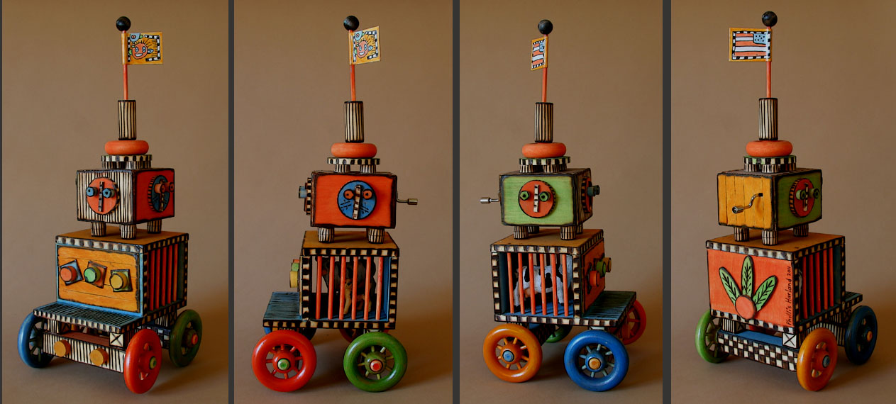 Wood, Music Box Mechanism, Plastic Toy Cow and Dog